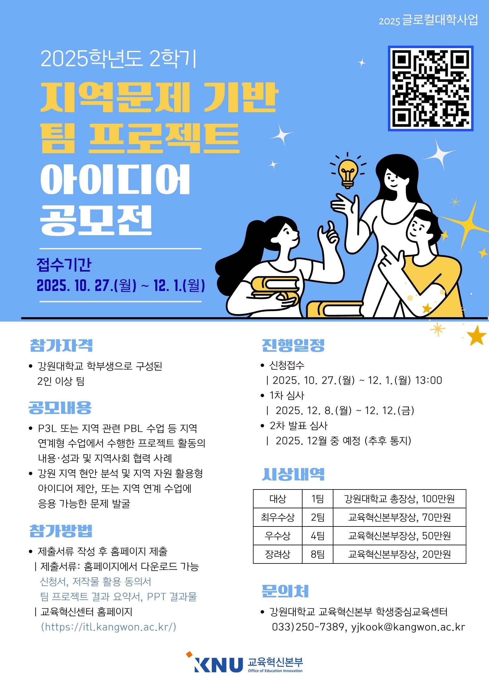 [글로컬대학30사업] 2025학년도 2학기 지역문제 기반 팀 프로젝트 아이디어 공모전 시행 안내
