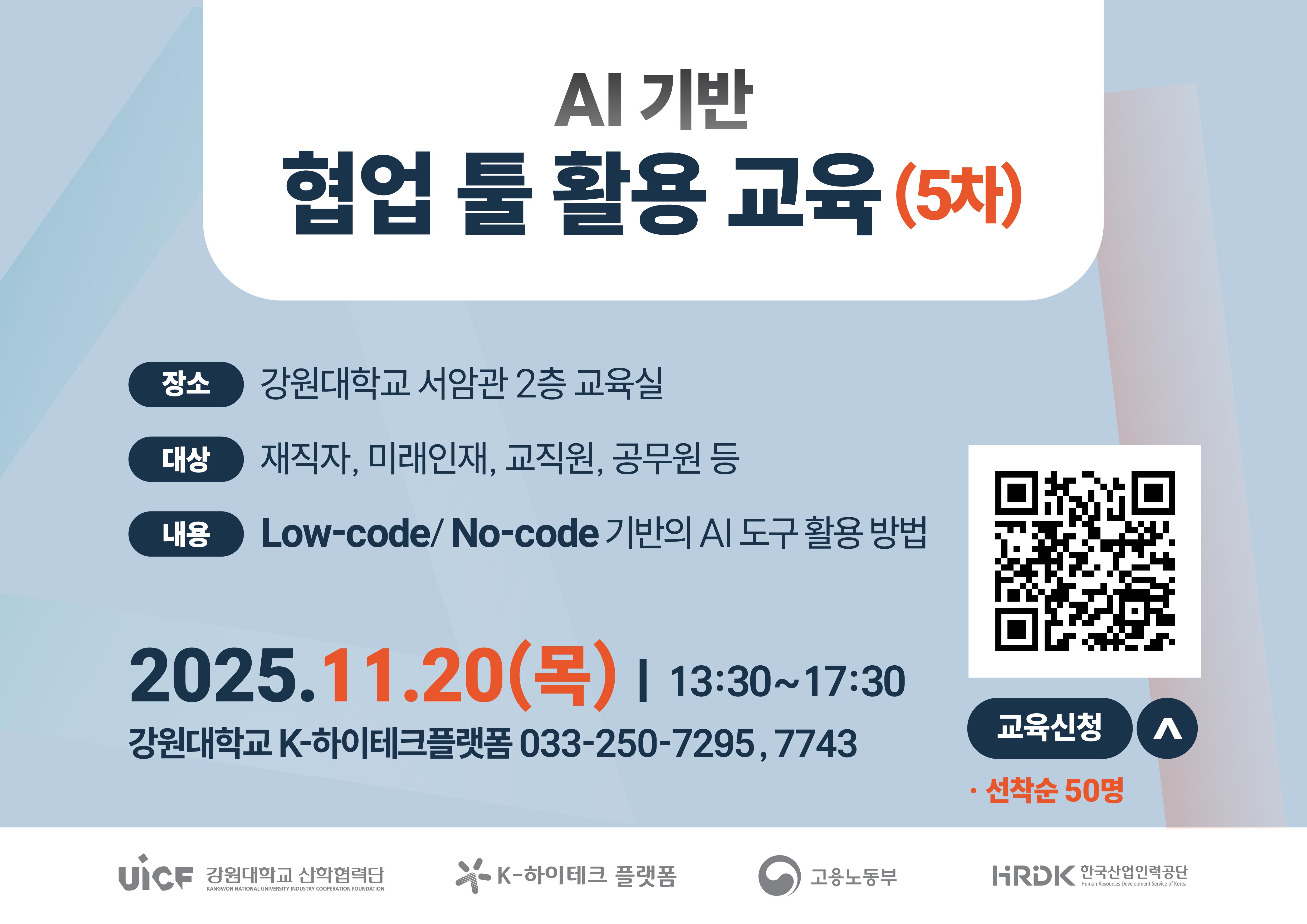 「K-하이테크 플랫폼 AI 기반 협업 툴 활용 교육(5차)」홍보 및 참가 안내