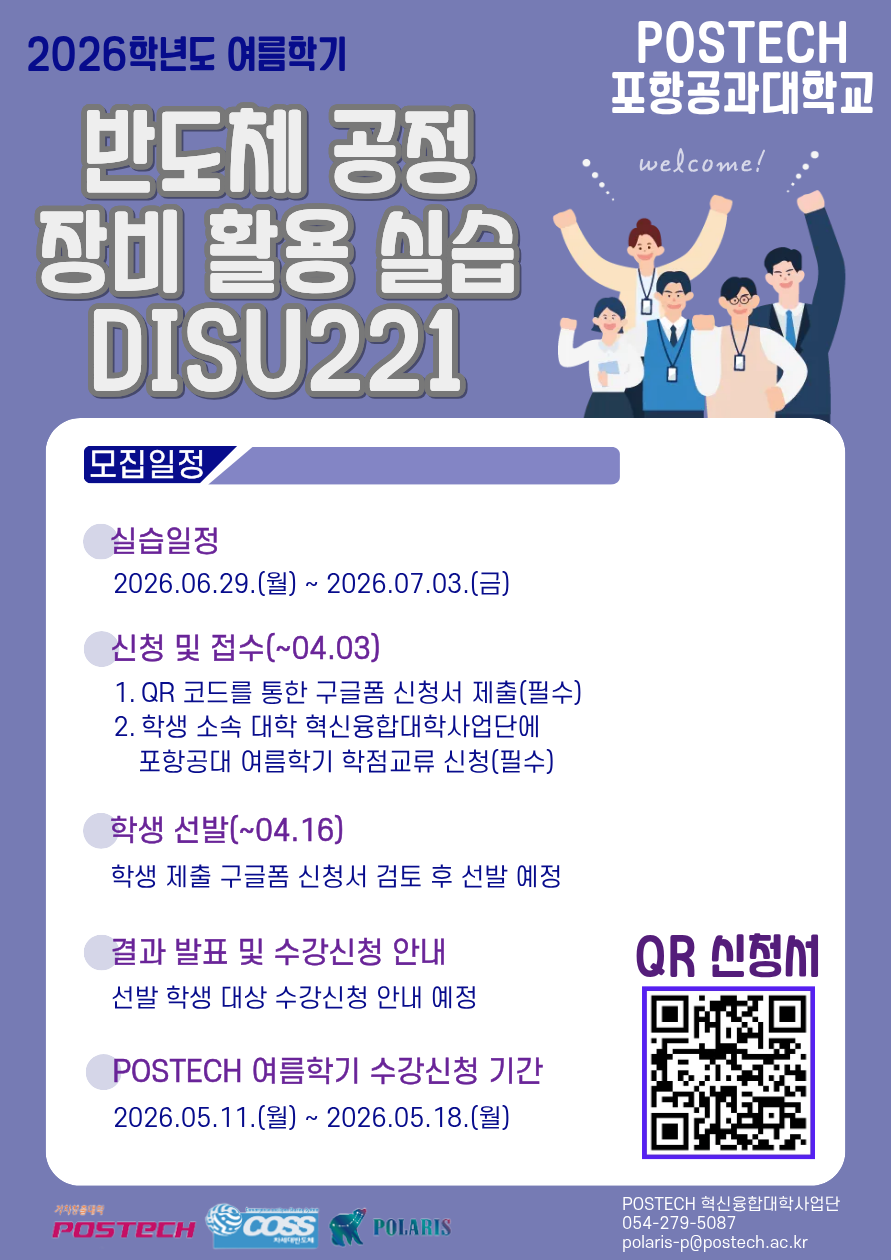 [혁신융합대학 사업 차세대반도체 분야] 2026학년도 여름학기 포항공과대학교 교류수학 안내